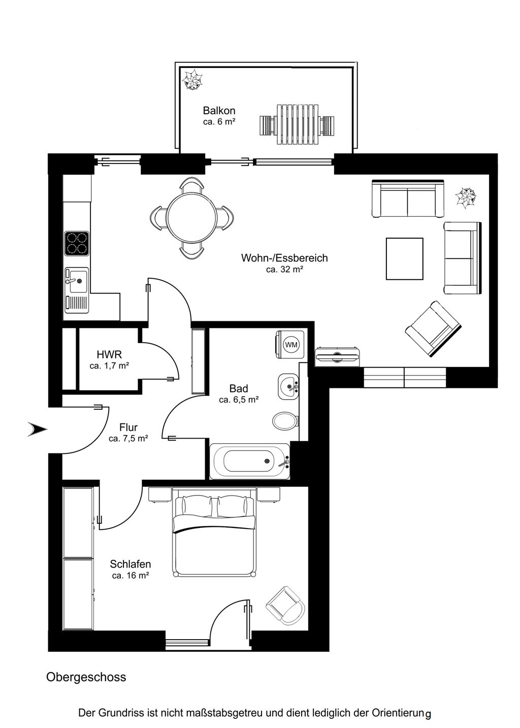 dass auch über einen praktischen Waschmaschinenanschluss verfügt. Das großzügige Wohn-Esszimmer mit ca. 32 m² besticht durch seine helle Atmosphäre und gute Grundriss-/Raumgestaltung.
